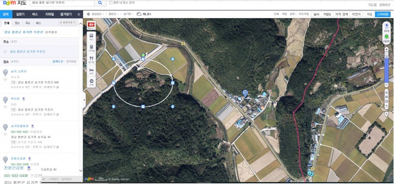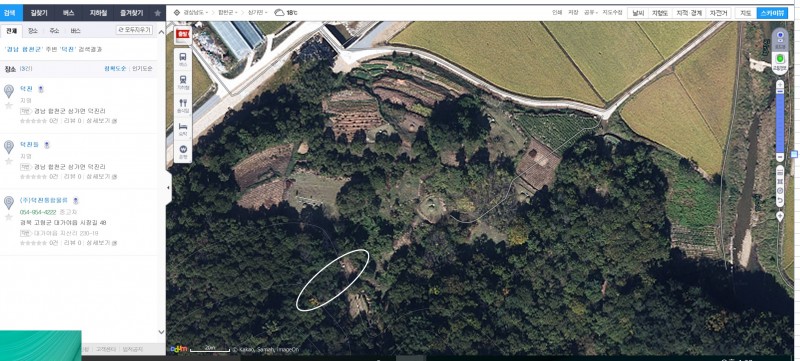 .산소 위치는 대략적으로 동그라미 표시 해놨습니다.(도로에서 밭의 좌측길을 따라 100~130m 정도 올라가면 우측에 위치)